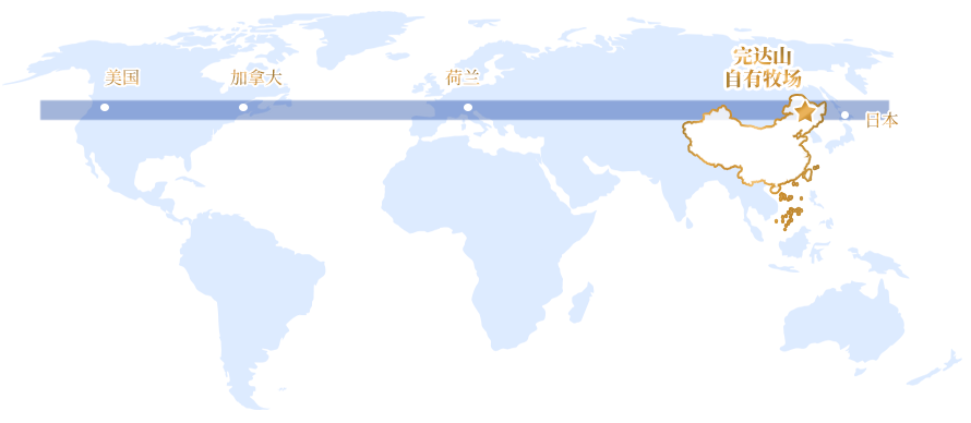 完達山乳業(yè)自有奶源基地位于北緯42°-47°,與荷蘭、丹麥、美國北部各州及日本的北海道等國家和地區(qū), 同處在“世界黃金奶源帶”上。是舉世公認的優(yōu)質(zhì)奶牛養(yǎng)殖基地,素有“龍江沃土,黃金奶倉”美譽。