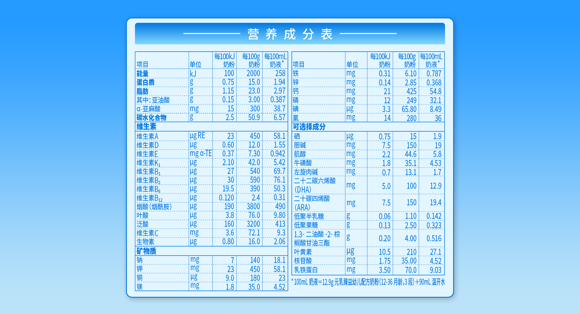 營養(yǎng)成分表